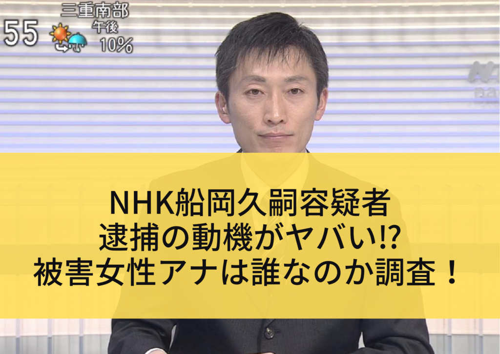 Web 2 days agoNHKが21日札幌放送局アナウンサー船岡久嗣容疑者47が逮捕されたと発表した 発表などによると17日夜都内のマンション内の女性宅に無断で侵入した. Web 1 day agoNHK札幌放送局のアナウンサー船岡久嗣容疑者47が20日に20代の知人女性アナウンサー宅に無断で侵入したとして邸宅侵入容疑で警視庁中野.